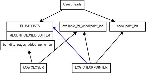 That's why from result of buf_pool_get_oldest_modification_approx() size of the log recent closed buffer is subtracted. The result is used to update the lsn available for a next checkpoint.